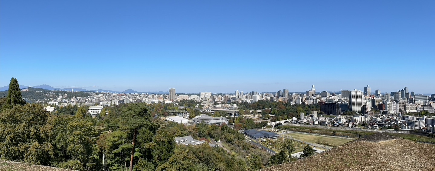 I stayed at APA Hotel near the train station. The next morning, I explored the southern part of the town by jogging. Across the Hirose River, there is a park (Dainejiyama Park) that offers a city view from the hilltop. My run back and forth was peaceful. After breakfast, I headed to the Sendai Castle Honmaru Ruins, which I assume is the city's iconic landmark. Since I chose to walk, I passed by the city museum along the way. To my disappointment, the ruins were merely a platform. After the visit, I proceeded to Tohoku University for lunch and met my collaborator, and also to register for the conference.